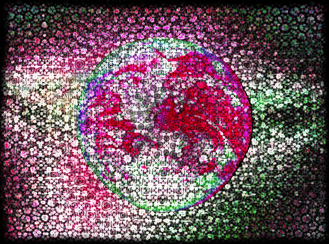 133. Made by new Moon and on LSD, just like the two artworks below this one. Inspired by the idea to show what life looks like outside of the 'problem frequency' that I got while having one of the hallucinations with intensified grain of your eyes (the grain you see when you walk into a dark room or rub your eyes too hard) in your vision - as can be read on: Ivo Actual Reality.